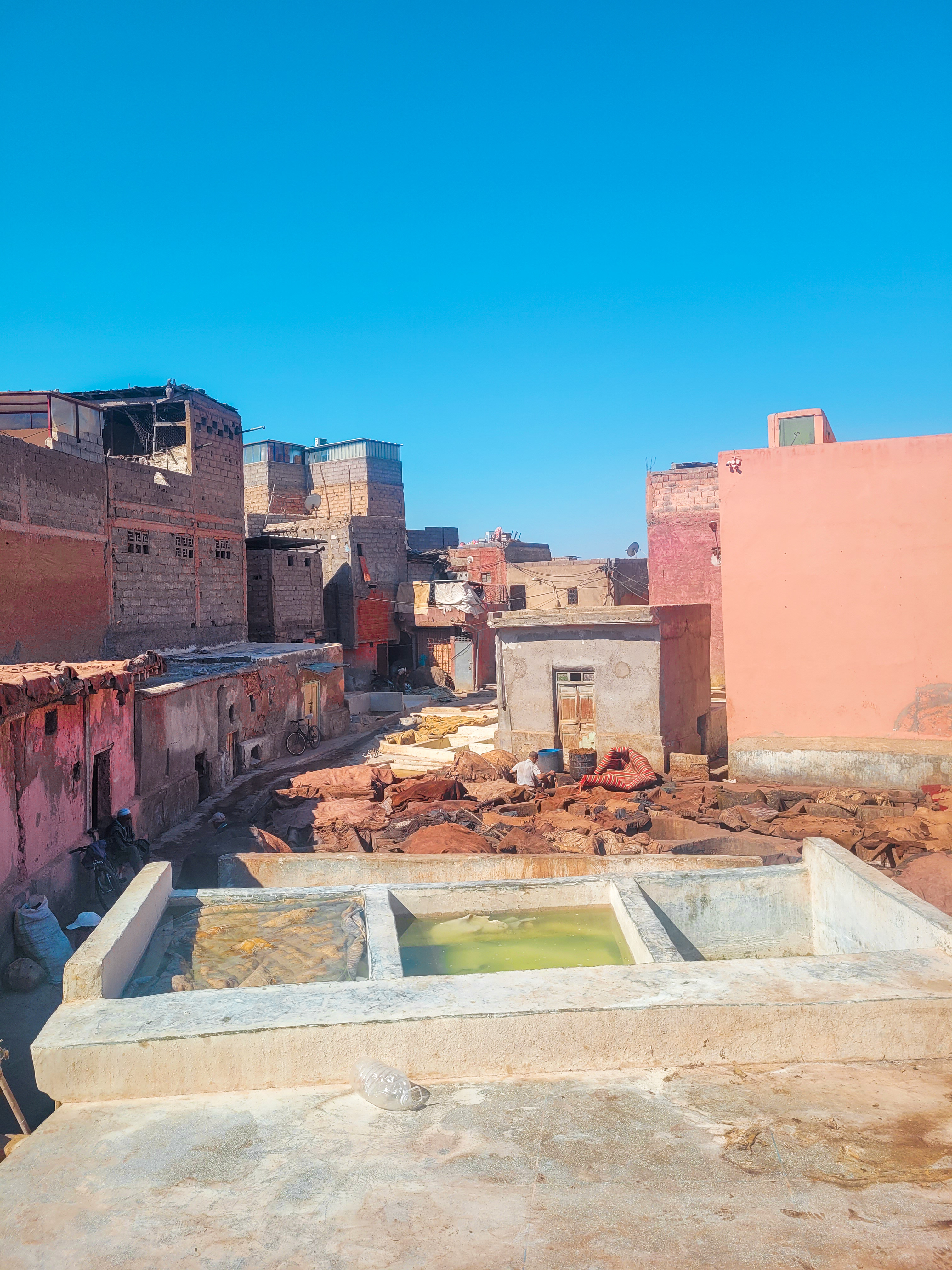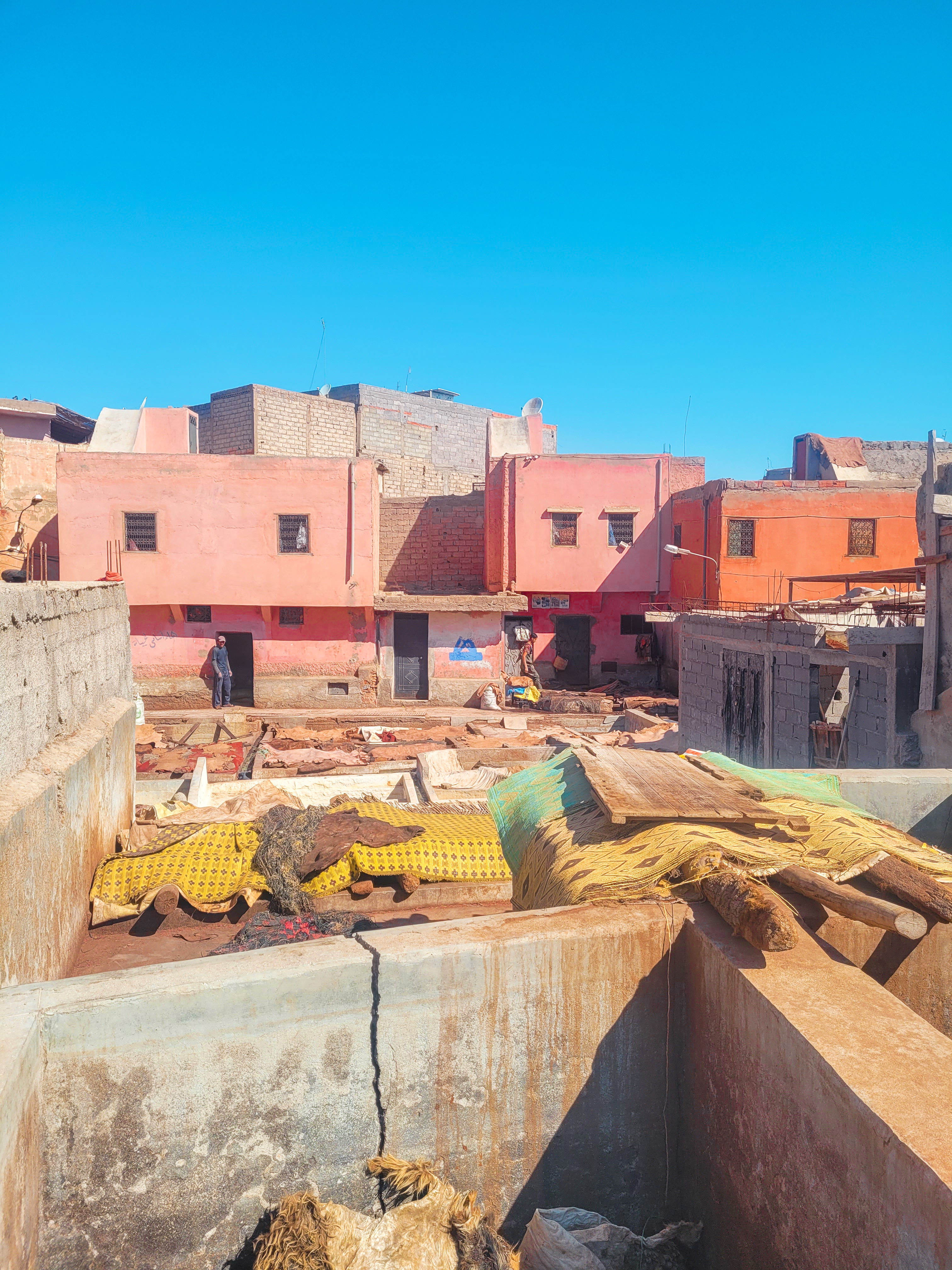 Isolé des souks de la ville, le quartier des tanneurs est endroit pittoresque de Marrakech, où on découvre les secrets de la technique de travail du cuir. L’odeur y est particulièrement forte. Le guide vous demandera de l’argent pour l’association des tanneurs et vous emmène dans leur boutique si vous voulez faire quelques achats.
