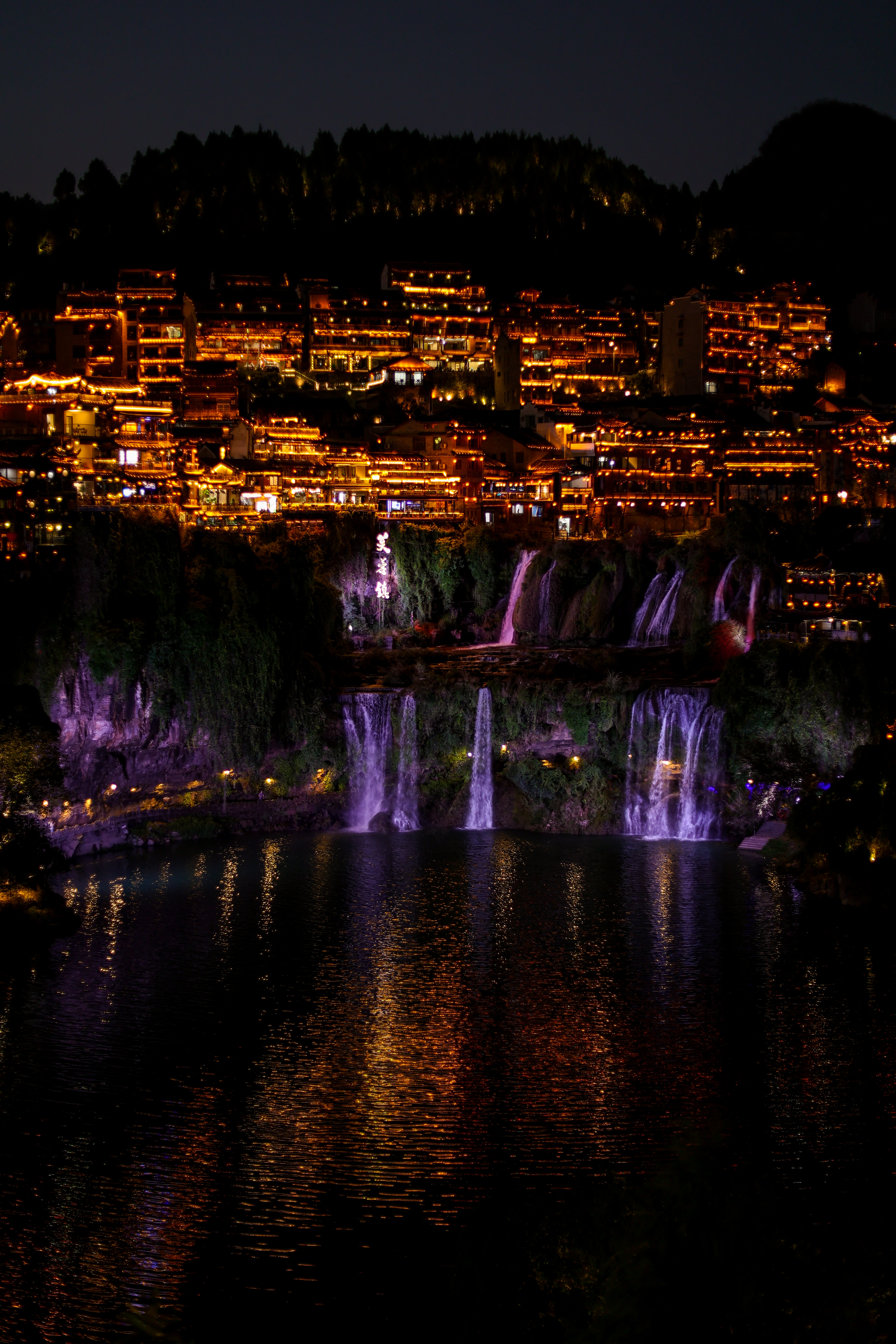 C’est ce qu’on appelle parfois la « ville ancienne suspendue sur une cascade » en effet, le charme principal de Furong vient d’une cascade spectaculaire qui coule en plein cœur de la ville, entre des bâtiments anciens accrochés à la falaise. La ville existe depuis plus de 2000 ans. Beaucoup des maisons traditionnelles sont construites en bois, sur pilotis. Ces habitations, souvent sur la falaise, surplombent rivères et cascade, ce qui donne un effet visuel très photogénique. À la nuit tombée la ville s’illumine c’est magnifique.
